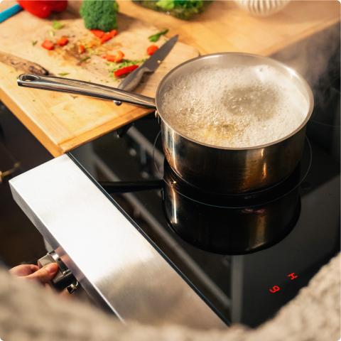 It’s way more efficient.With gas stoves, most energy is wasted—only 20-40% of it even makes it to your food. Thanks to the magic of induction, Electra’s stove puts up to 90% of its energy directly into your food. This means more precise control and less time waiting.
